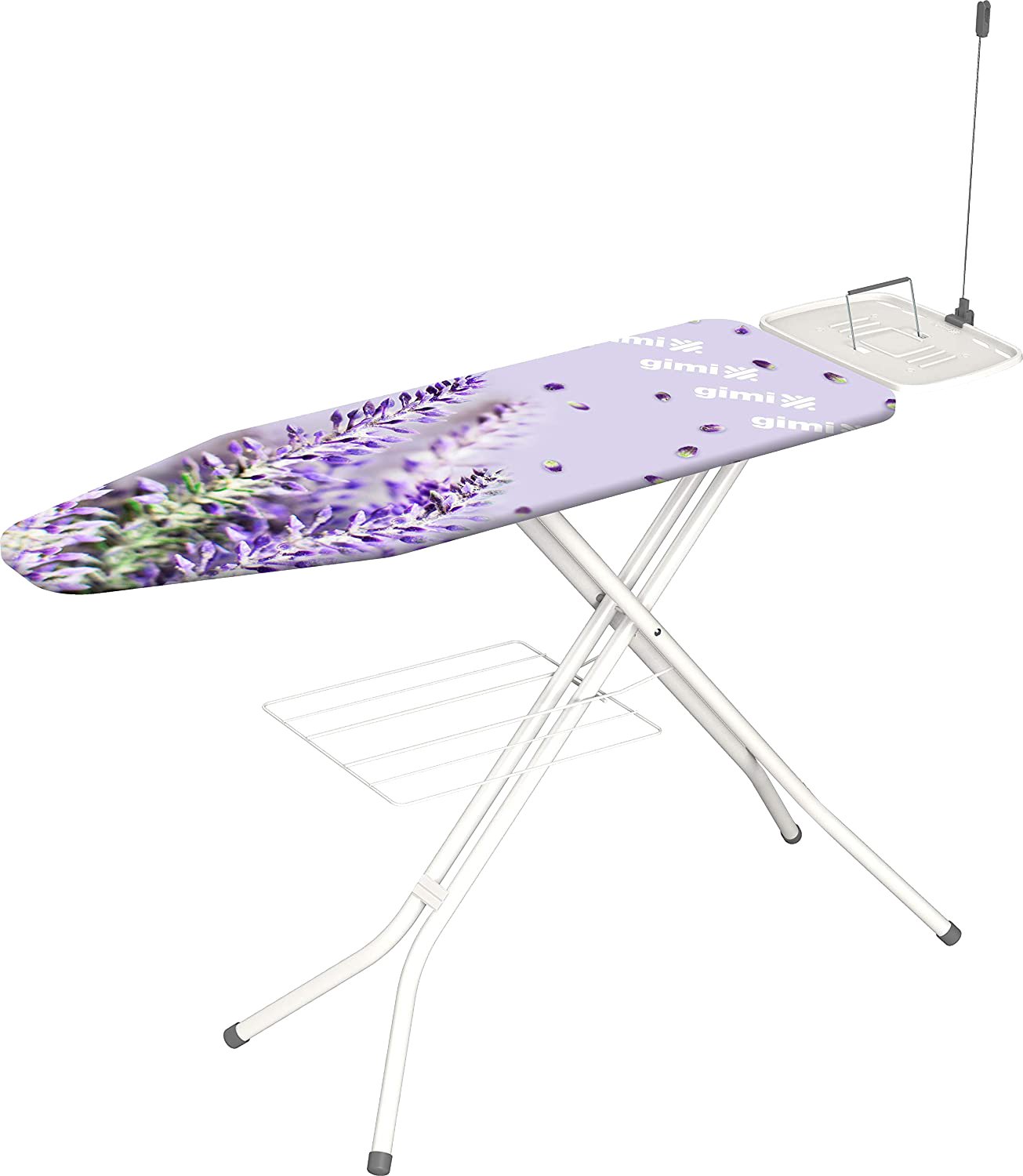 In acciaio dotata di poggiaferro con archetto di appoggio reversibile, adatto anche per mancini. Struttura gambe a sezione tonda. Accessoriata di griglia portabiancheria e antenna tendifilo. Copriasse 100% cotone con imbottitura in spugna. Disponibile con design assortiti del copriasse. Dimensione piano di stiratura 120x38 cm.