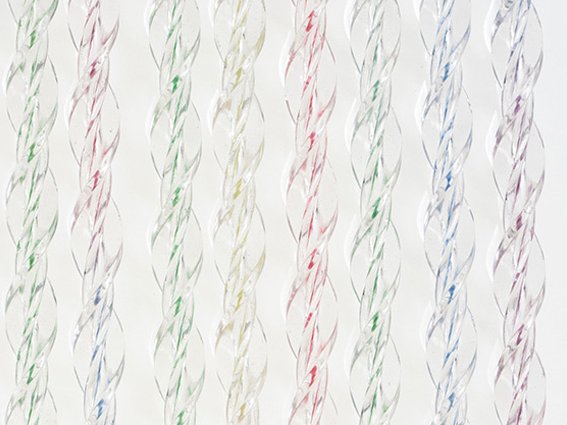 Realizzata con un profilato in PVC cristallo dalla forma elicoidale, avvolto su un'anima centrale di poliestere colorato. Colore multicolor.