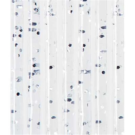 Tenda formata da profilati in PVC cilindrico lisci di base trasparente, al cui interno sono inglobati glitters. La forma cilindrica permette una facile e completa pulizia del prodotto.