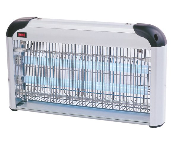 Struttura in alluminio e plastica con griglia di protezione. A due lampade a fluorescenza ed una griglia elettrificata a basso voltaggio. Cassetto raccogli insetti. Tensione 230V/50Hz.
