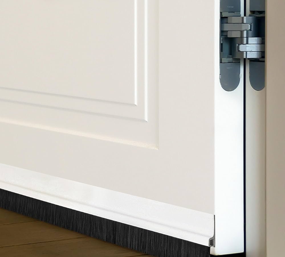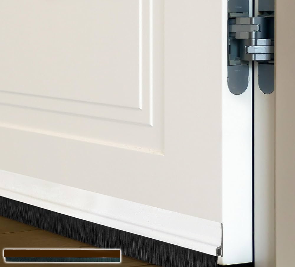 In PVC rigida e spazzola in PP. Evita correnti d'aria, infiltrazioni di polvere e rumori, favorisce inoltre il risparmio energetico, perché riduce le escursioni termiche mantenendo il benessere della casa. Dimensioni: 100X3,9 cm.