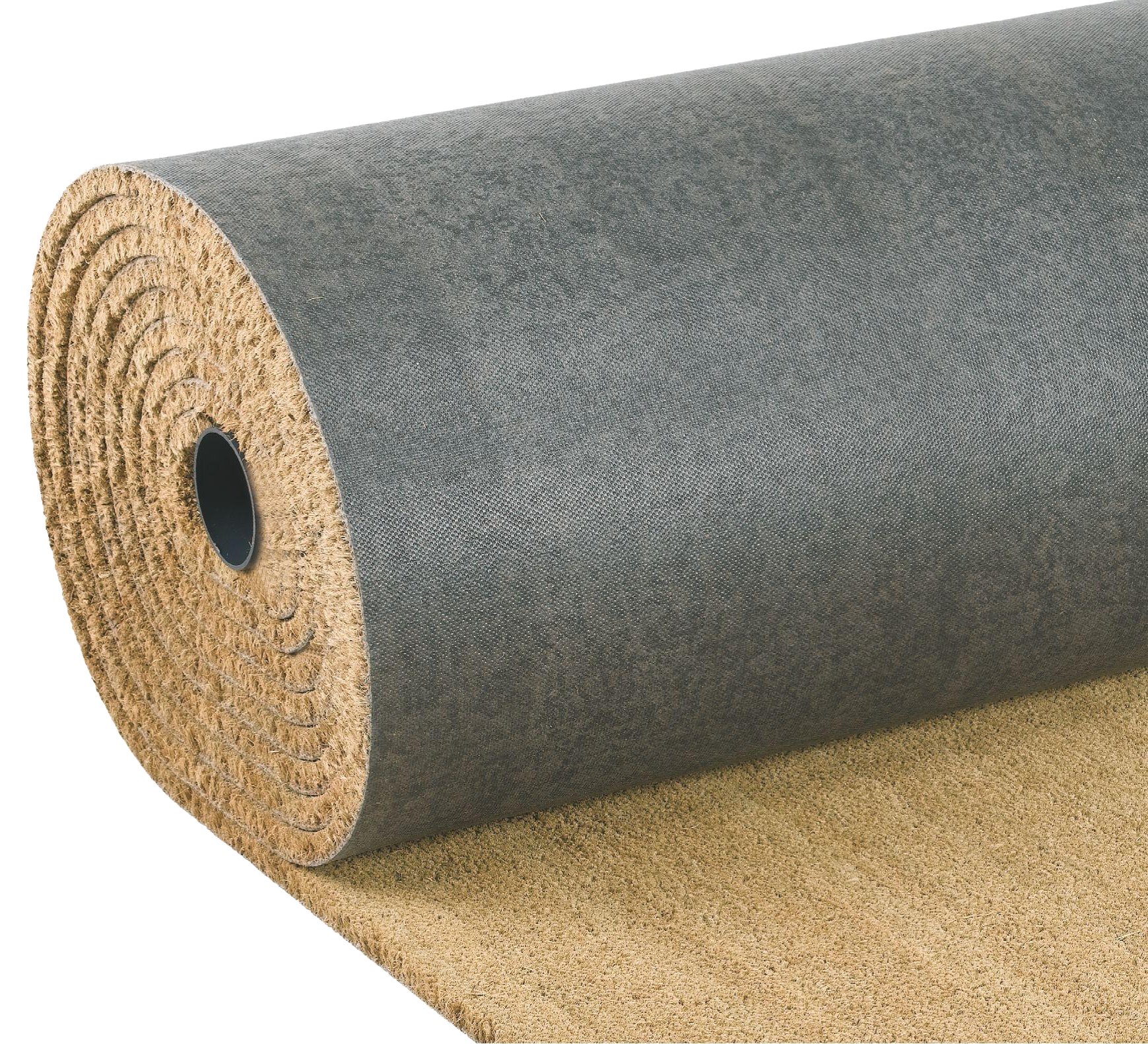 In fibra di cocco naturale a pelo tagliato, con sottofondo in PVC. Spessore 17 mm.