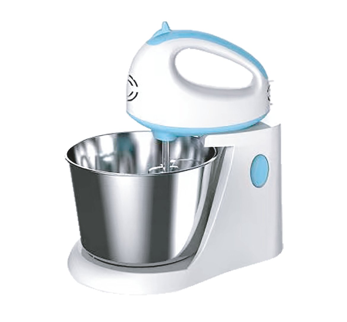 Mixer con 5 impostazioni di velocità, 1 paio di fruste per montare e 1 paio di ganci per impastare. Ciotola in acciaio inox, facile da pulire. Protezione automatica contro il surriscaldamento lo rende più sicuro e protetto