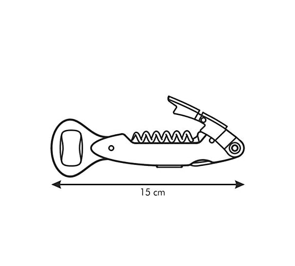 Prodotto in acciaio inox, è adatto per aprire ogni tipo di bottiglia con tappo di sughero o a corona; è anche provvisto di un coltellino per incidere e rimuovere facilmente la capsula dal tappo in sughero. Piegato, occupa davvero poco spazio.