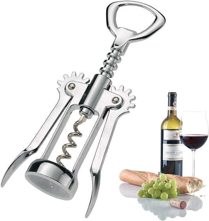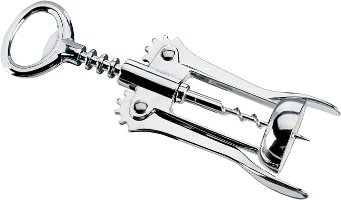 Levatappi a leva prodotto in acciaio inox di prima qualità. Facile da usare e sicuro, autocentrante, si appoggia sull'orlo della bottiglia e guida la spirale dentro il tappo di sughero. Ruotando la testa del levatappi, i bracci si alzano fino a bloccarsi nella posizione più alta; spingendoli verso il basso, il tappo viene estratto facilmente dalla bottiglia.