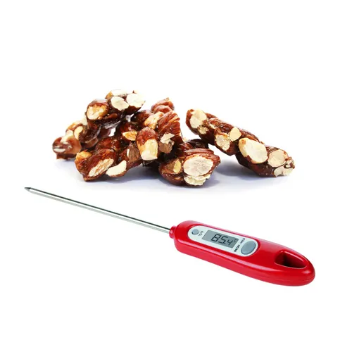 Indispensabile per preparare tutte quelle ricette che necessitano di un controllo specifico della temperatura, come le marmellate fatte in casa, il cioccolato, le creme e le salse. Il termometro digitale misura velocemente da -50 a +300 °C commutabili in °F ed è preciso. Prodotto in acciaio inossidabile di alta qualità e plastica resistente, provvisto di un display LCD e di una custodia protettiva per il sensore termico che è lungo 11 cm. Funziona con una comune batteria LR44 inclusa nella confezione. Resistente al vapore e all’umidità.