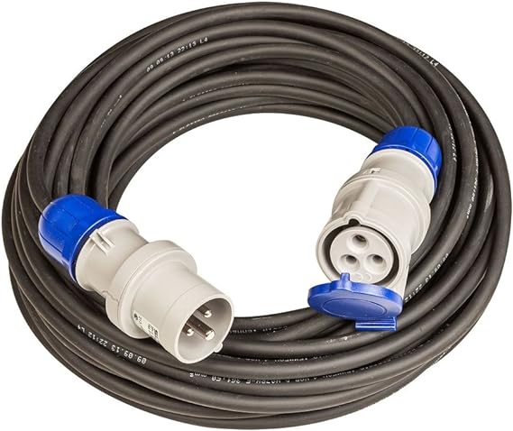 Prolunga industriale in gomma con presa e spina IP67. Cavo H07RN 3G2,5 mm². Parti conduttrici realizzate in lega di ottone ad alta conduttività. Marcati CE in conformità alle direttive Europee.