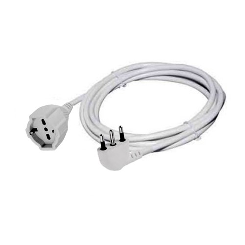 Cavo 3G1,5 mm², spina a 90° 16A 2P+T, presa schuko 10/16A 2P+T. Colore bianco.