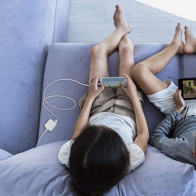 Una presa Usb tipo A e una presa Usb tipo C per ricaricare rapidamente e comodamente fino a 2 devices. Output 17,5W. Spina 2P da 2,5A. Lunghezza cavo 2 mt. Colore bianco/grigio.