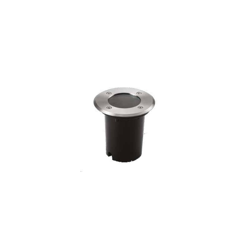 Materiale: Alluminio e Acciaio Inox. Finitura acciaio. Potenza massima 50 Watt. Cassaforma ø 103 mm x h 120 mm. Lampada non inclusa. Tensione 230V. Grado di protezione IP65.