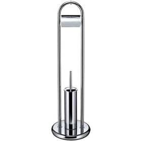 Portarotolo e portascopino. In acciaio. Diam. cm 25, H. 86, L. cm 20.